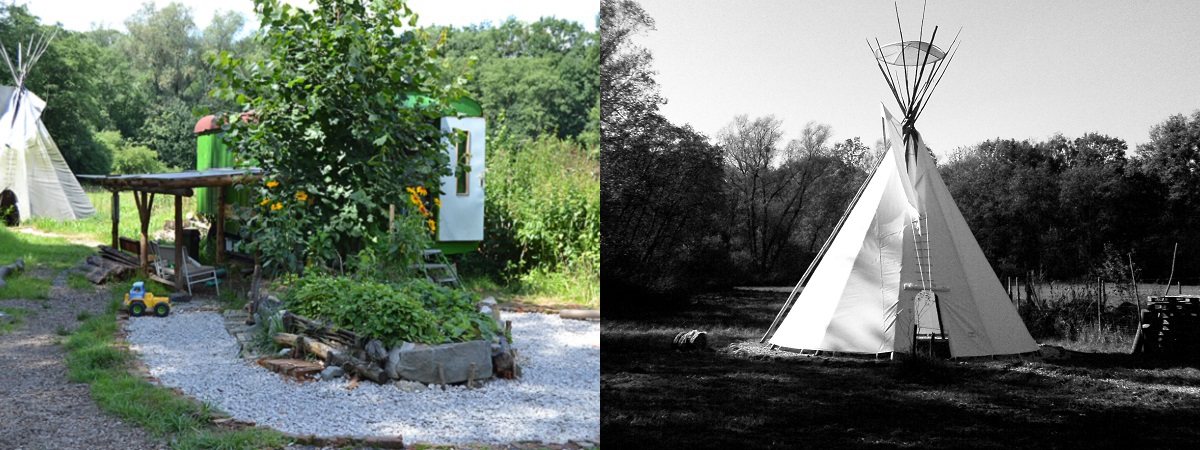 Nakoupili jsme teepee a nerekonstruovanou maringotku z peněz z vlastních zdrojů, vysypali štěrk kolem unimobuňky a vytvořili u ní přístřešek.
