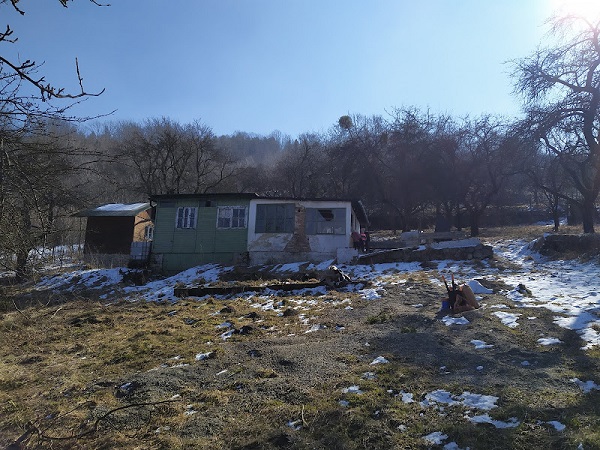 Máme krásnou zahradu u potoka a modré nebe nad hlavou, z hmotného vybavení pouze nerekonstruovanou uniobuňku a kadibudku.
