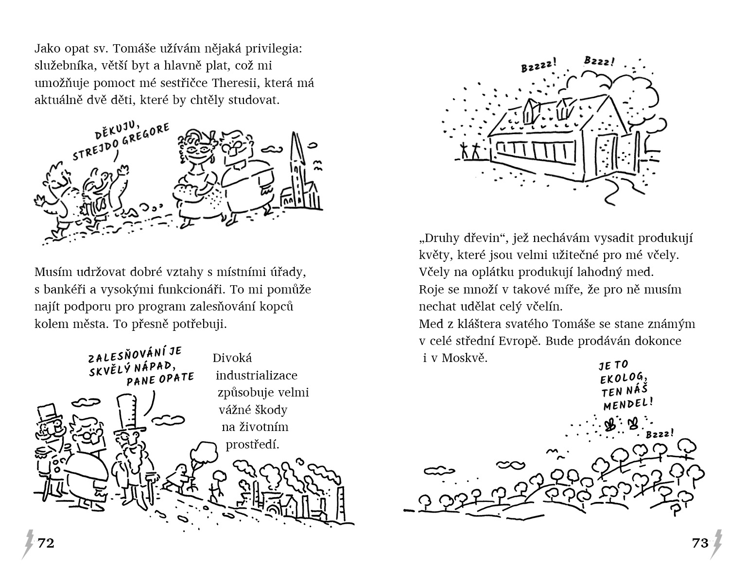 Jako první vyjde kniha o brněnském opatovi, otci genetiky Gregoru Johannu Mendelovi. Společně se projdeme jeho krušným dětstvím, komplikovanými studijními lety, jeho působením v klášteře, originálními pokusy na zahradě a výsledky jeho práce. Dozvíte se ale i to, že házel sušené hrášky po nepozorných studentech.