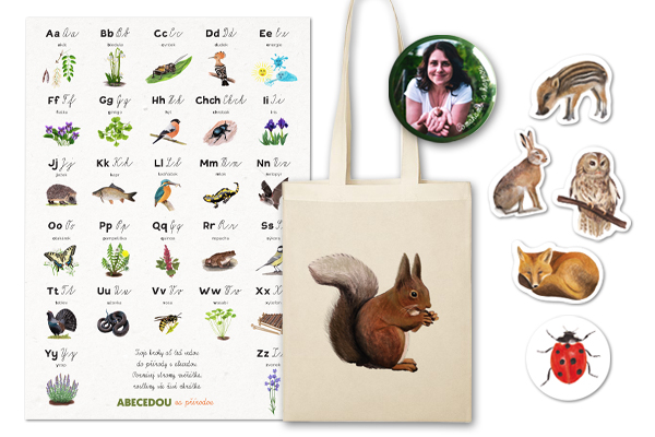 Mezi dalšími výhodnými balíčky s odměnami najdete také abecedový plakátek formátu A3, látkovou tašku s veverkou a nažehlovací obrázky.