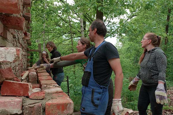 Stavíme pokud možno z recyklovaných a přírodních materiálů s důrazem na udržitelnost projektu a kladný přístup k životnímu prostředí. Obvodové zdi rostou z cihel pocházejících ze staveb určených k demolici v okolí, čímž zároveň dochází i k sanaci blízkého sousedství. Jako tepelná izolace budovy bude použita sláma.