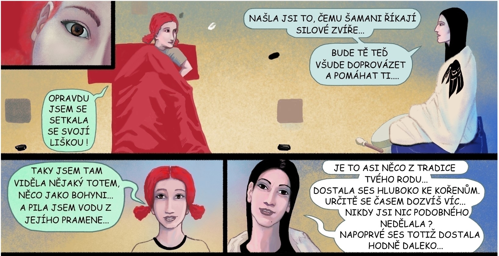 Výtvarno není to, co by mě profesně živilo, a tak mám tu příjemnou možnost tvořit jen z čiré radosti. Tvorba je pro mě nástroj, díky němuž si sám v sobě dokážu lépe vyjasnit nebo upevnit témata, která mě zajímají. A komiks je pro takový účel skvělým prostředkem - spojení slova, obrazu, společně s dějovou kontinuitou, to vše pomáhá ujasňovat, koncentrovat a dokonale tříbit myšleny. Komiksy kreslím rád už od dětství a díky tomu jsem si mohl zažít, co je komiks za působivé médium. Často se zde setkáváme s archetypy - s obrazy z podvědomí, které můžeme potkávat ve snech. Je to jeden ze silných důvodů, proč věnuji tolik času komiksu. Skrze tvorbu se mi v běžné realitě daří pootevřít brány k podvědomí, nahlížet do světa snů a pohybovat se v prostoru živé imaginace. Obrazy a poznání z tohoto světa se pak snažím přenést do příběhů, a tím i do naší reality. V komiksu TAJEMSTVÍ MĚSTSKÝCH ŠAMANŮ je mnoho myšlenek vylovených ze snů.