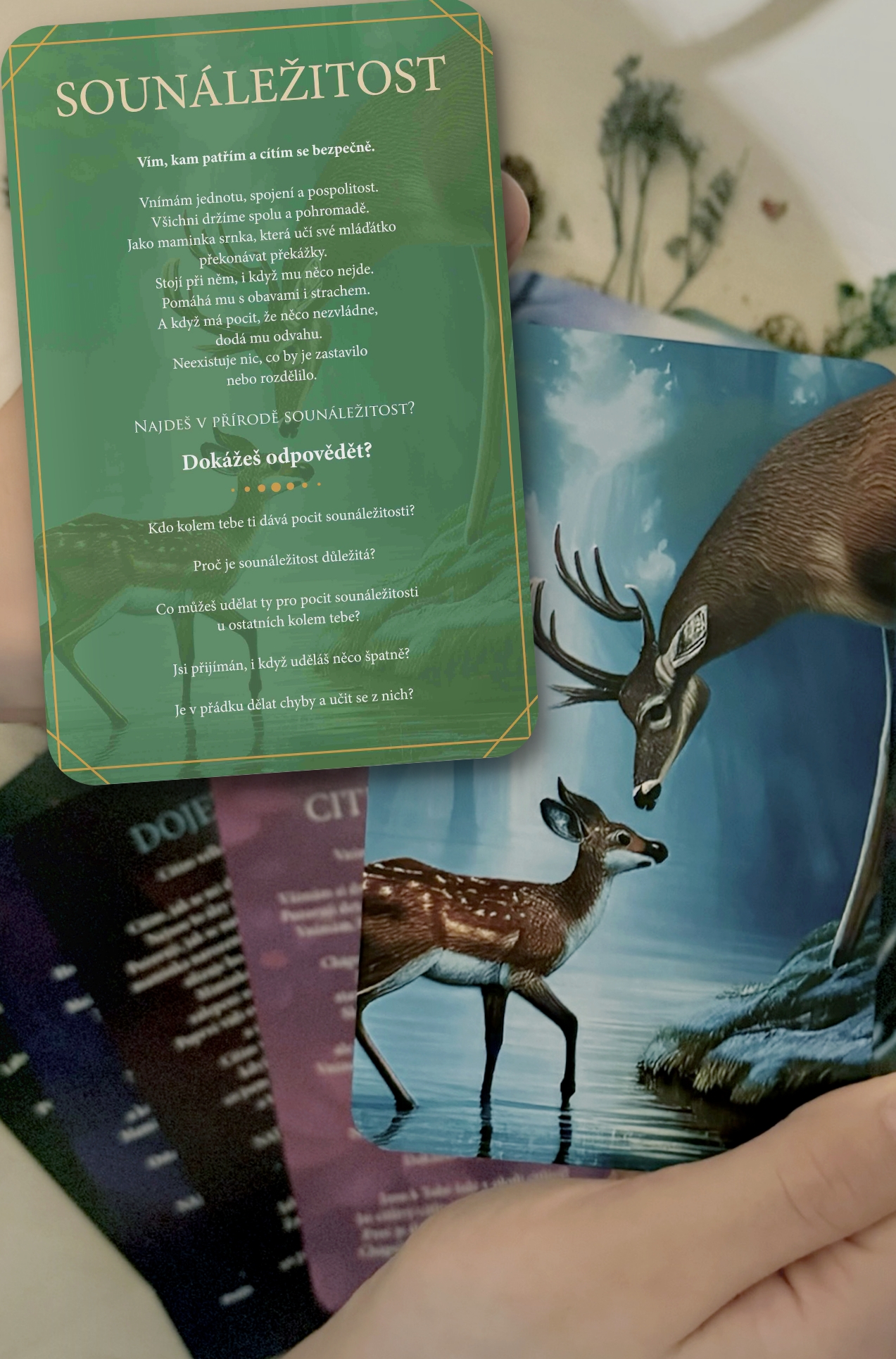 Tyto karty jsou inspirovány přírodou, tedy z toho, co je nám nejpřirozenější, a jejich cílem je učit děti, ale i dospělé, komunikovat o emocích, pojmenovávat je a vzdělávat se jimi v propojení s přírodou. Umí tedy sloužit jako klíč k poznávání emocí a pocitů, dále také jako inspirace pro povídání s dětmi o emocích přímo v přírodě - Jaký pocit ve vás vyvolá třeba zpěv ptáků u potůčku, poklidně tekoucí voda, nebo zlomený strom? Dítě si též může vybírat podle obrázku, jak se cítí, nebo jak by se cítit chtělo. Na každé kartě je několik otázek, na které dítě odpovídá a tím lépe chápe daný pocit či emoci. Rodiče mohou z odpovědi snáze rozeznat příčinu daného pocitu. Je důležité, aby děti získaly schopnost pojmenovat své emoce a porozumět jim. Mohou se pak lépe vyrovnávat se situacemi, které emoce vyvolávají. Když děti umí pojmenovat své emoce, mohou je lépe vyjádřit a získat větší sebeuvědomění. Prostřednictvím projektu Emoční dobrodružství nabízím rodičům nástroj, který jim pomůže na cestě společného poznávání světa emocí a pocitů se svými dětmi.