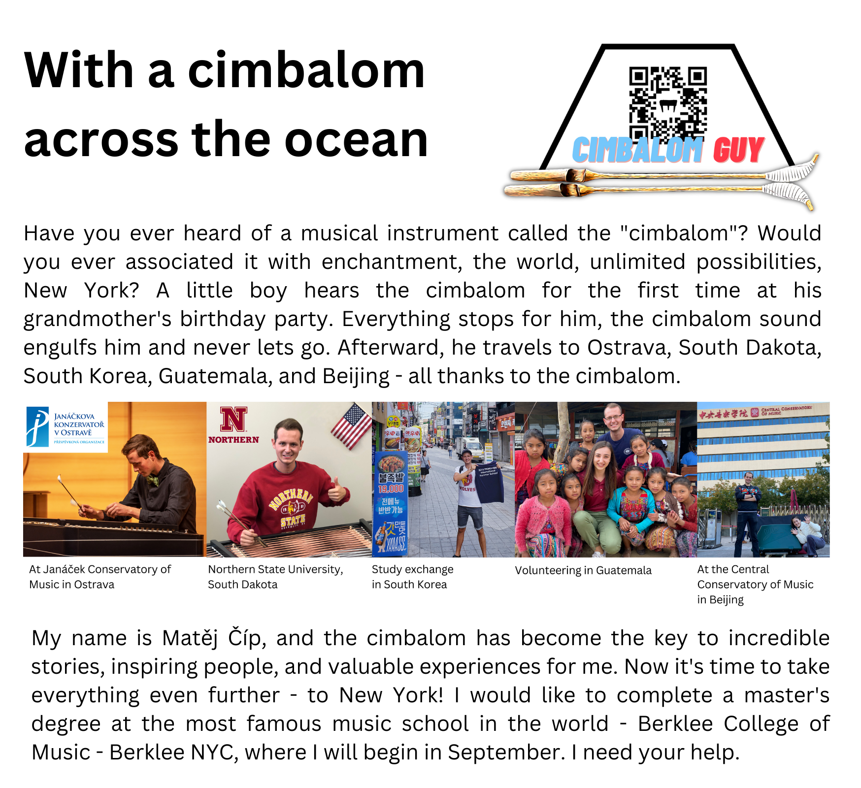 Chci se stát patronem Matějovy cesty s cimbálem za oceán