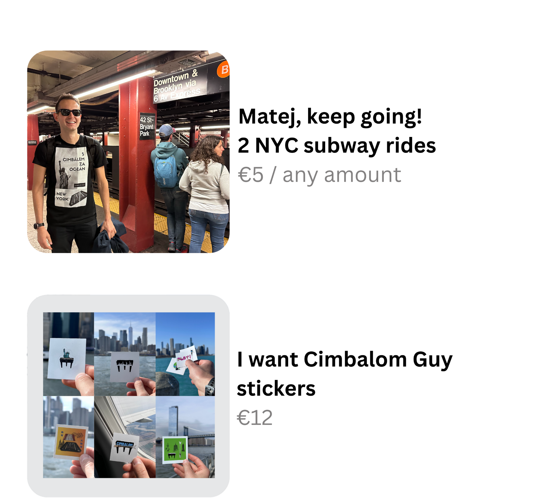 Ukažme světu, že cimbál patří na vrchol. Tvůj příspěvek mi umožní cestovat newyorským metrem. Jedna jízda v něm vyjde přesně na $2.75, zhruba na 60 korun. ?