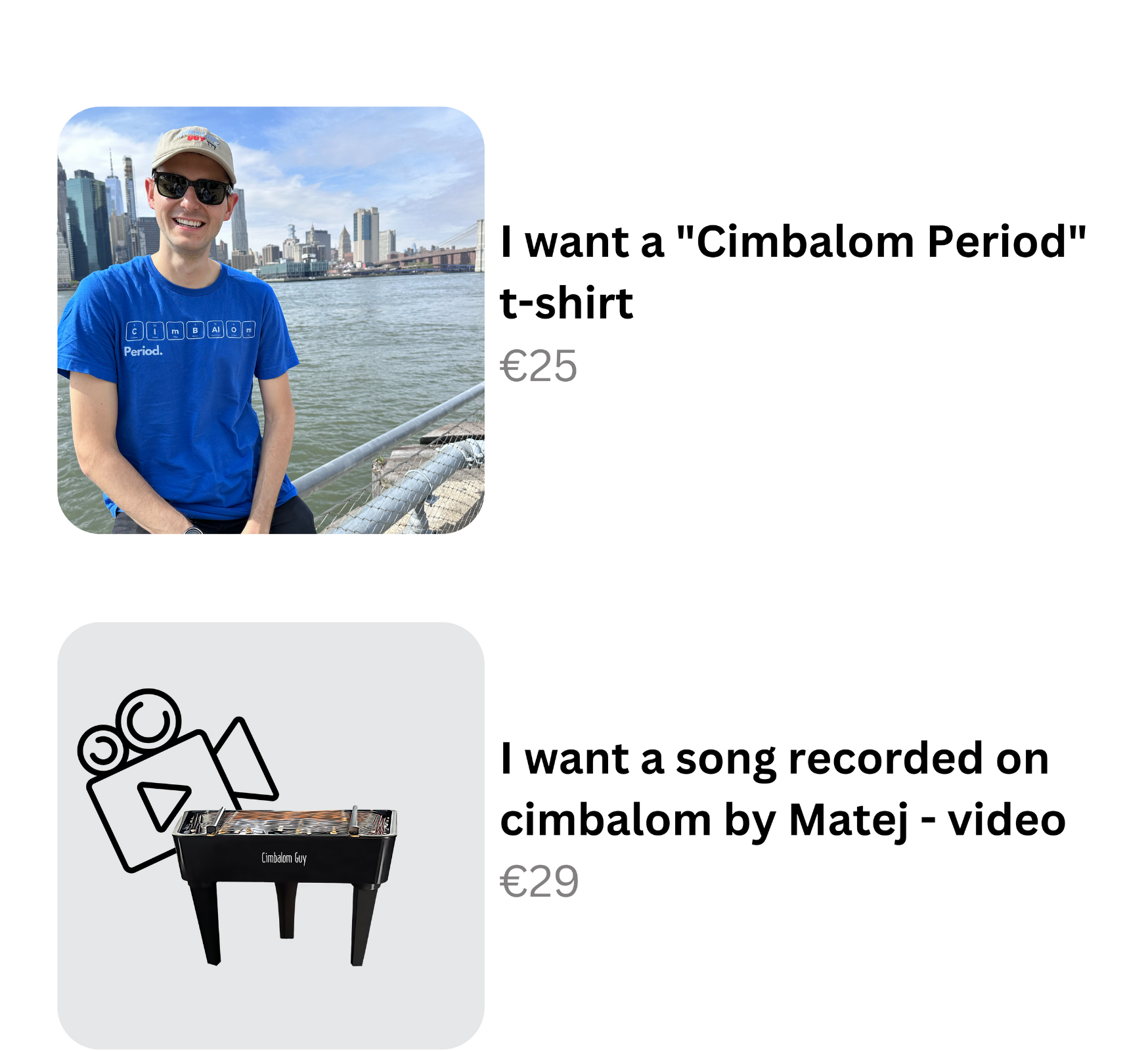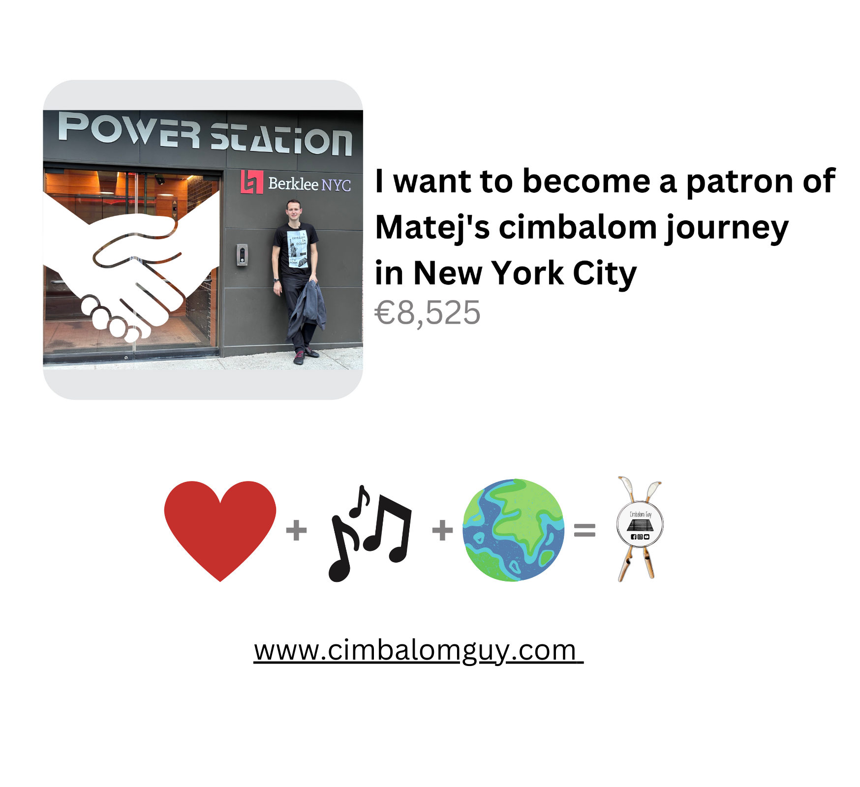 Získáním této vyjímečné ceny v kampani „S cimbálem za oceán“ se stáváš nejen podporovatelem, ale i oficiálním patronem mého hudebního dobrodružství. Tvá podpora je neocenitelná a jsem rád, že Tě mohu přivítat v této exkluzivní skupině. ?