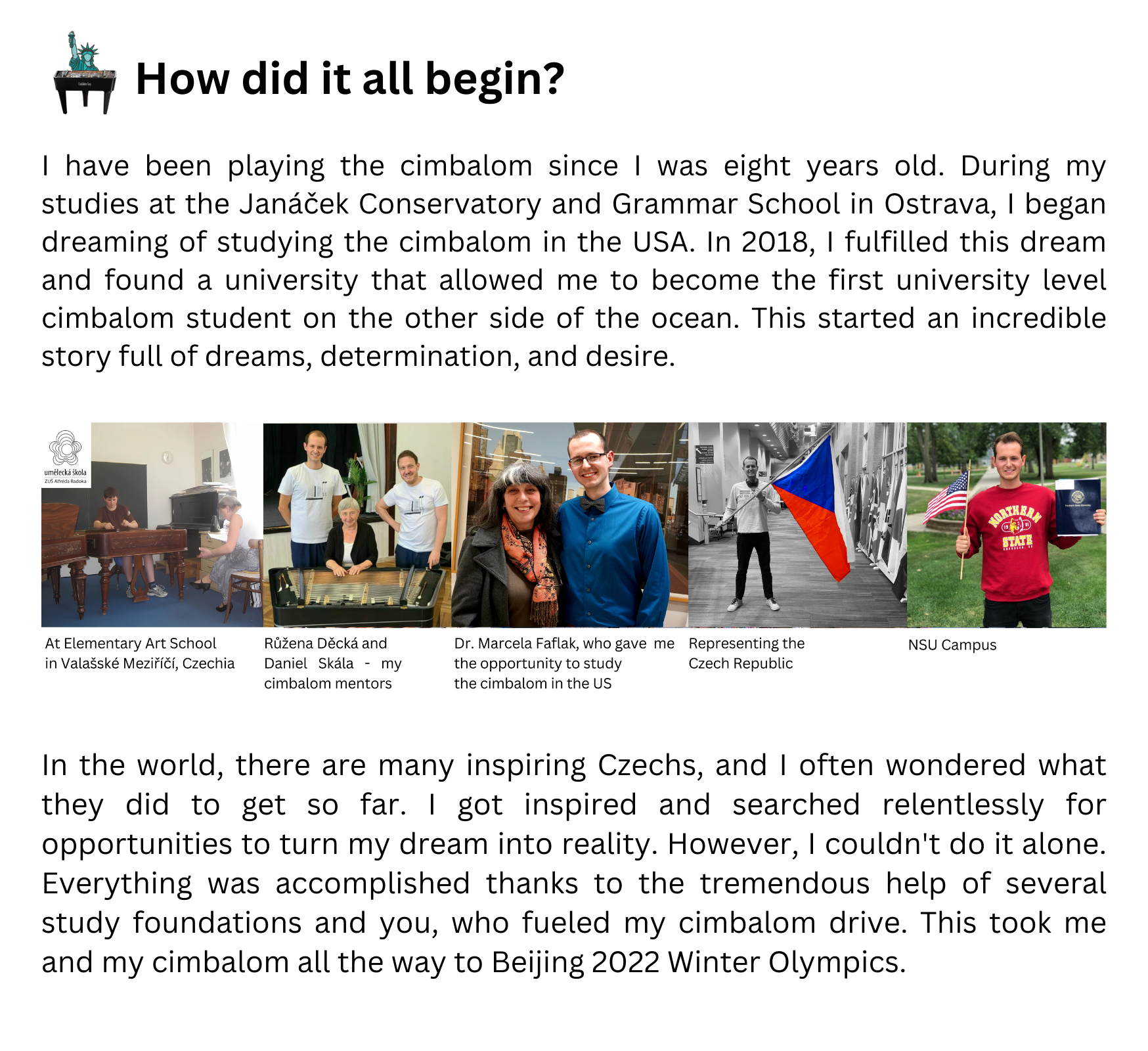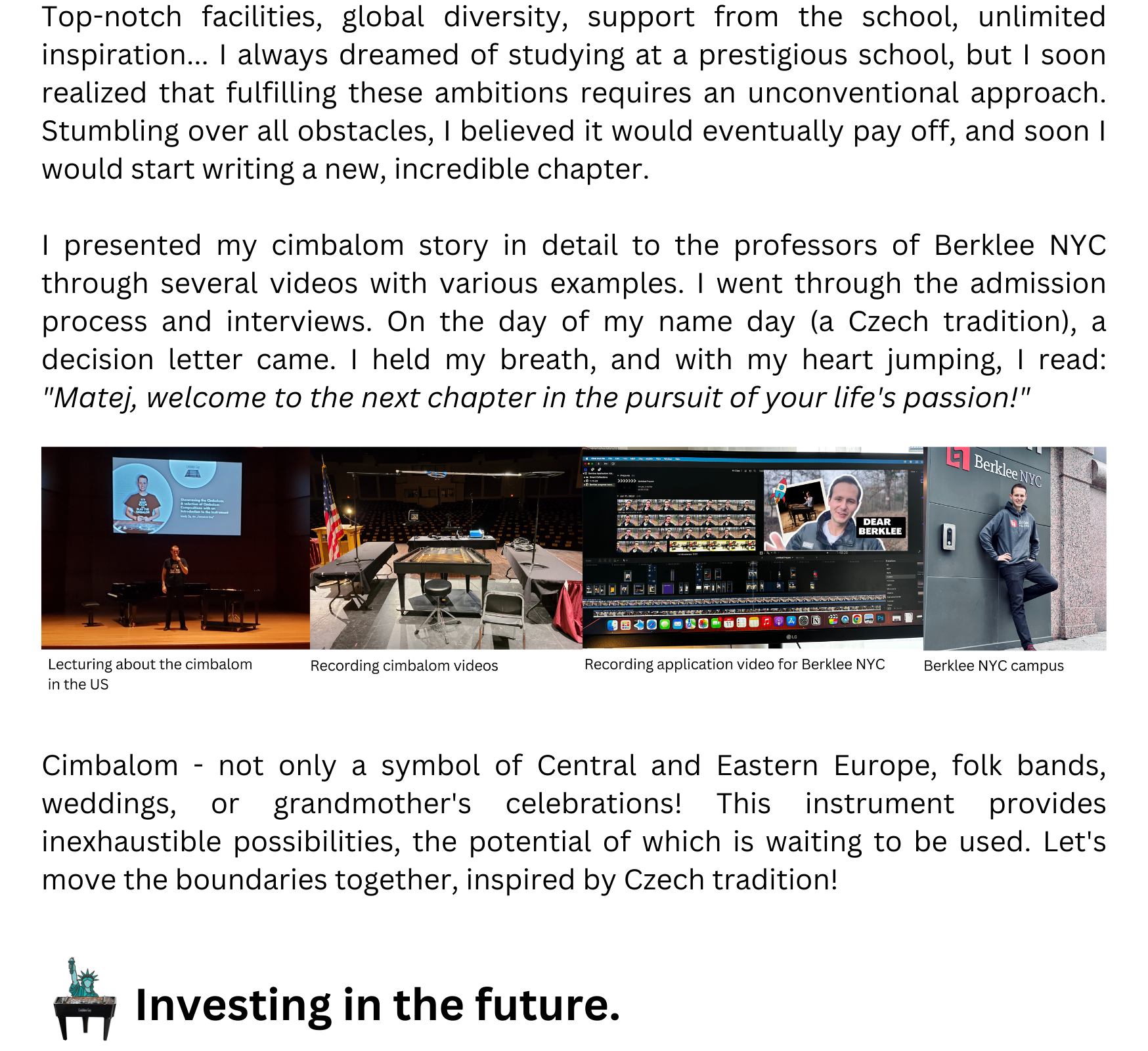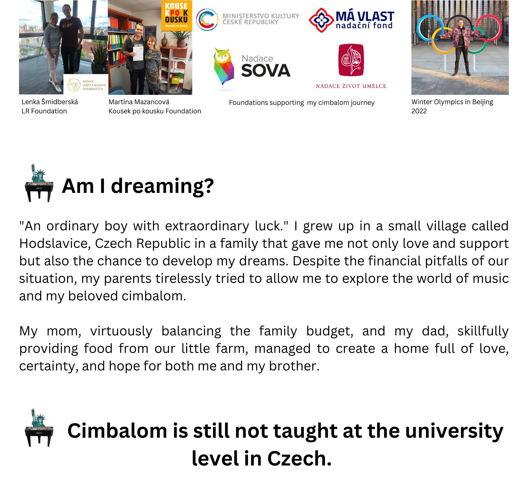 Chci se stát patronem Matějovy cesty s cimbálem za oceán