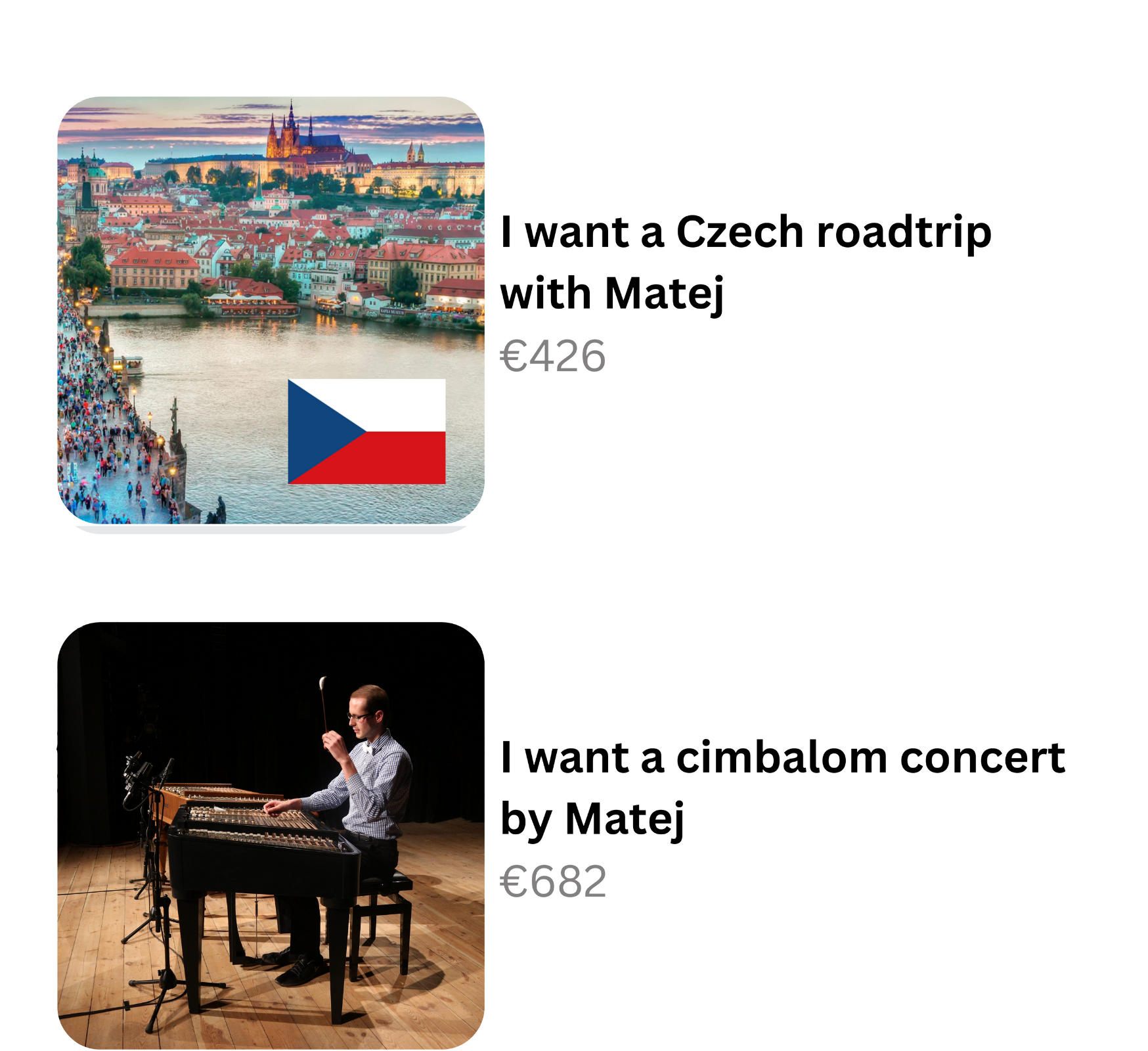 Místo tradičního průvodce budeš mít jedinečnou příležitost poznat lokální kultury prostřednictvím mých přátel roztroušených po celém světě. Na každé zastávce ti umožním nahlédnout do mých cimbálových aktivit a zažiješ pravou sílu cimbálové hudby v různých zemích a kulturách.