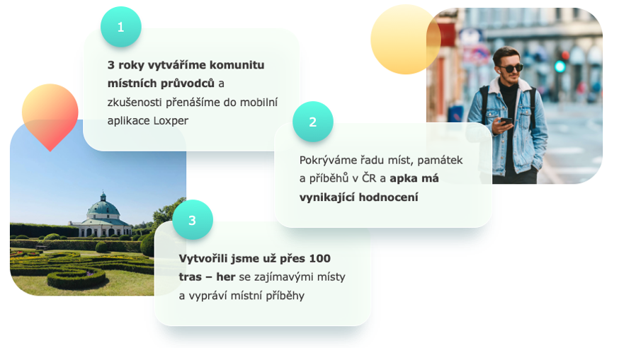 Máme už přes 120 herních příběhů, které vás zavedou skoro na tisícovku lokalit. Vytvořili je pro vás místní průvodci, kterých je už přes čtyři desítky. Podívat se, kde všude jsme, můžete na našem webu www.loxper.com - a apku si můžete vyzkoušet na Androidu i iOS .