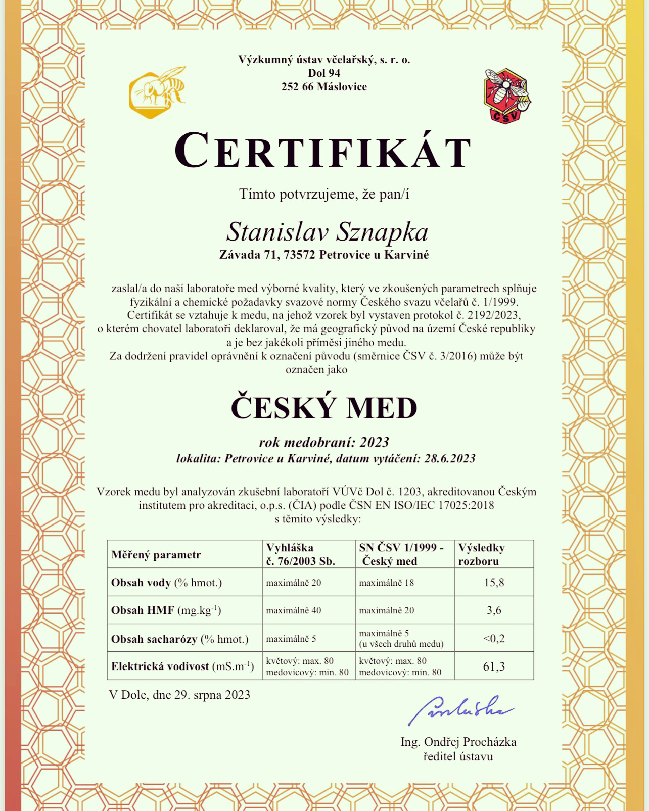 S manželem a synem včelaříme již několik let a kromě našeho medu na našich stránkách naleznete produkty, které jsou výhradně naší receptury a naší produkce, produkce našich včelstev. Med, propolis, včelí vosk, bylinky. Veškeré výrobky jsou přírodní, velice si zakládáme na tom, že naše produkty jsou 100% přírodní a bez chemických přísad. Nyní každým rokem s certifikátem z výzkumného včelařského ústavu "ČESKÝ MED".