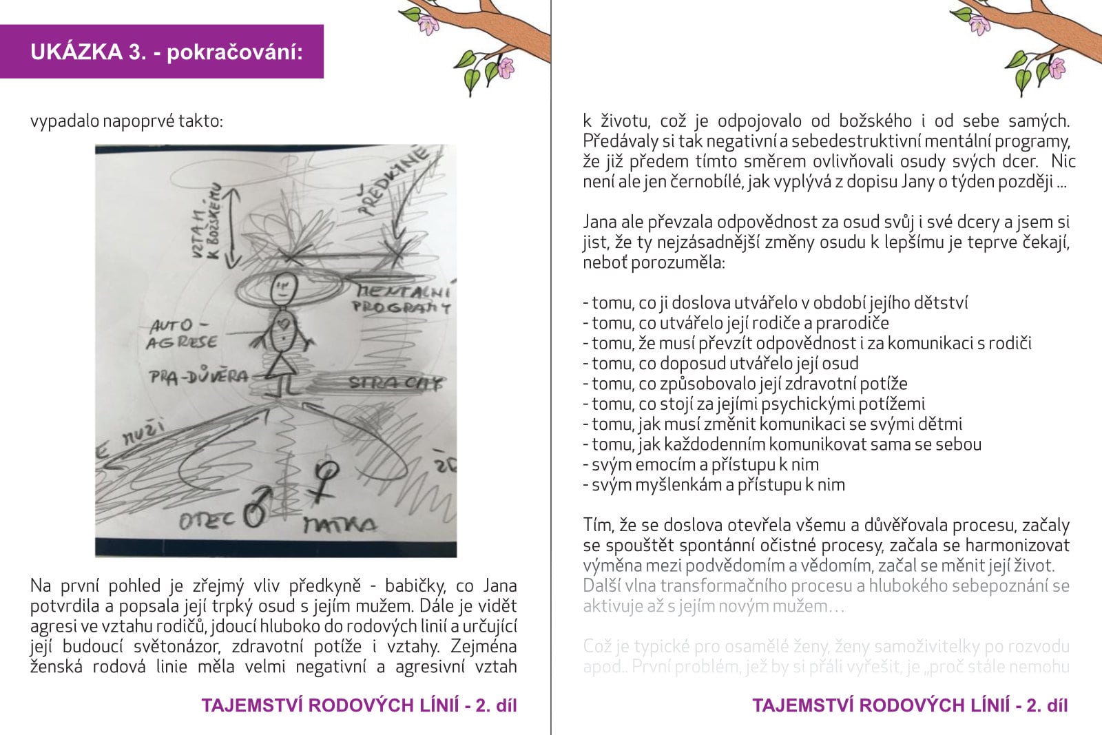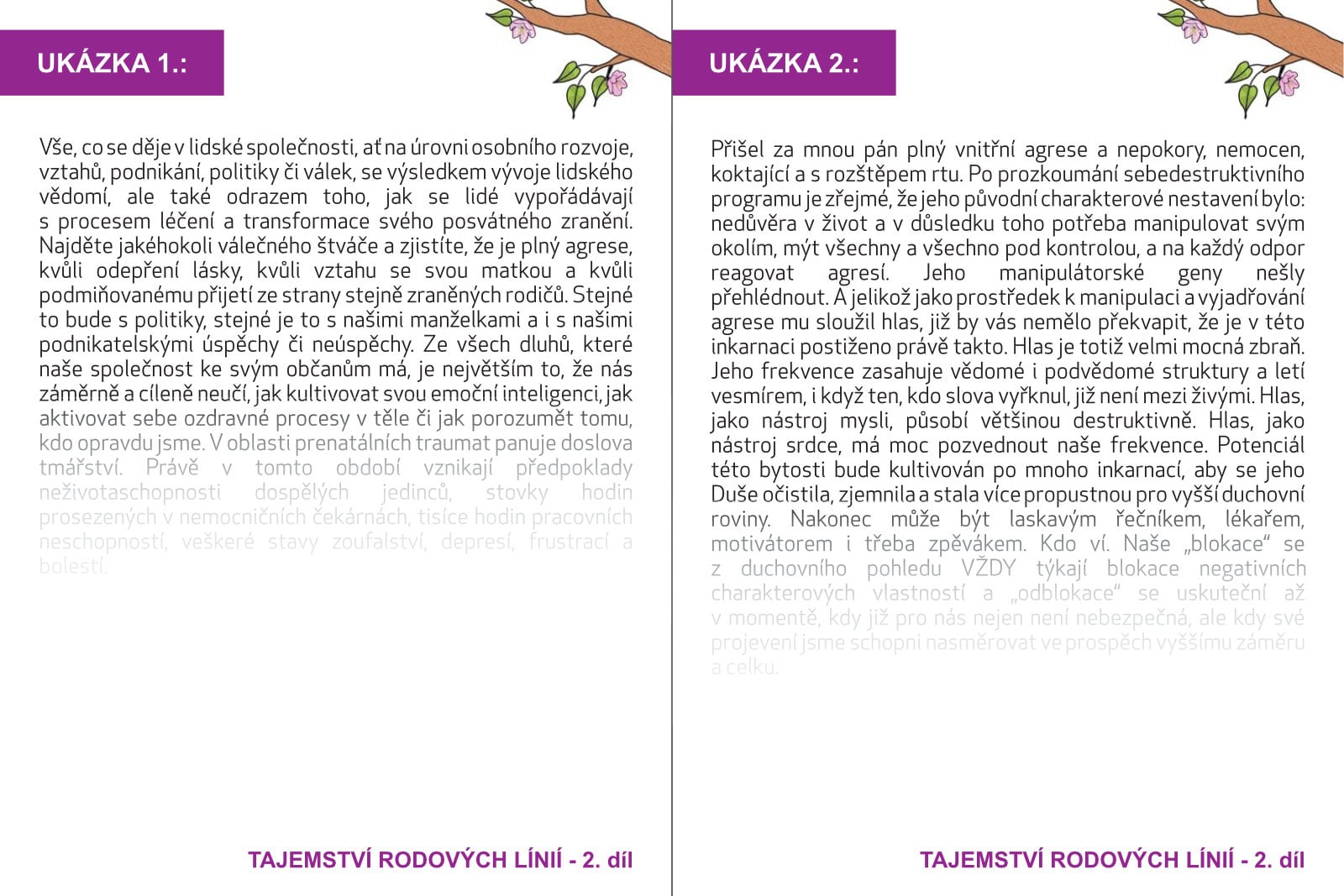 Zatímco díl první představuje základní znalosti na cestě sebe-rozvoje, léčení svých vztahů, rodin i celých rodů, odpovídá na otázky týkající se potíží našich dětí či osvětluje mnohé naše tzv. nepřízně osudu, tak díl druhý posouvá čtenářovu perspektivu ještě výše. Kniha je rozdělena, do 3 hlavních částí: Vliv evoluce (minulost, genofond, rodiče, DNA), vliv involuce (budoucnost, božství, duch, duše, karma) a propojení (přítomnost, lidská bytost, vědomí). Autor posouvá hranice energo-informačního vlivu na čtenáře k velmi všeobsažnému náhledu na to, co utváří nás, náš osud, naše vztahy a nakonec i naše zdraví. Témata týkající se nefunkčních systémů, karmických mechanizmů, role rodičů a prarodičů, psychosomatiky rodiny, důležitost matky a somatizace její psyché do dětí aj., Tato kniha vzniká jako pomoc a podpora těm, kdo jsou již připraveni změnit život svůj i svých potomků k lepšímu. Kniha je opět propletena případy z Radomírovi terapeutické praxe, jeho vlastními zkušenostmi a prožitky či příhodami.