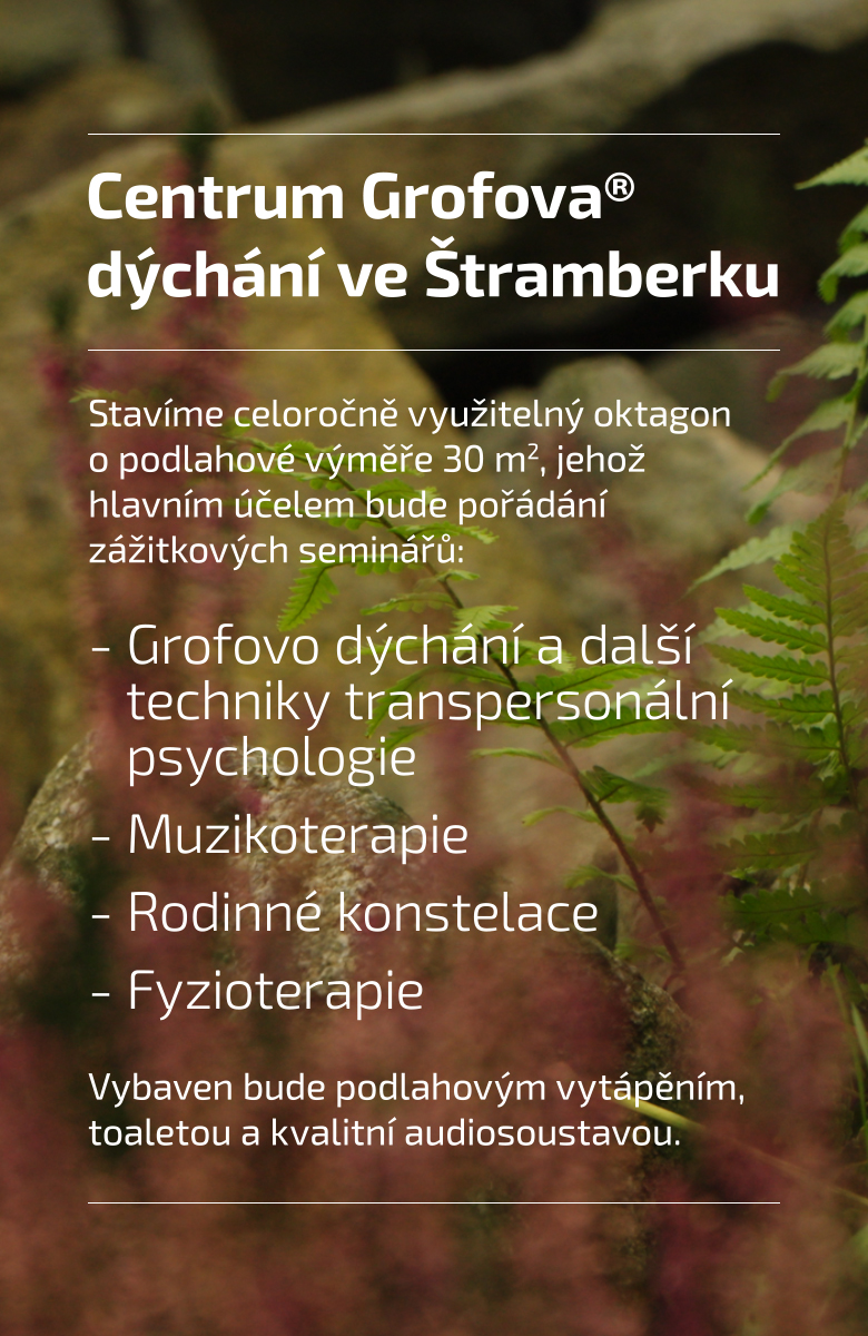 V prostředí malebného Štramberka stavíme centrum celostního rozvoje zaměřené především na Grofovo® dýchání a další techniky transpersonální psychologie. Díky našemu projektu se můžete stát jeho prvními účastníky nebo se zapojit jako sponzor projektu.