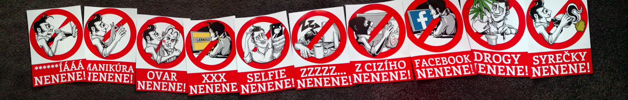 Vzhled samotných samolepek najdete na https://www.facebook.com/evzene.nenene