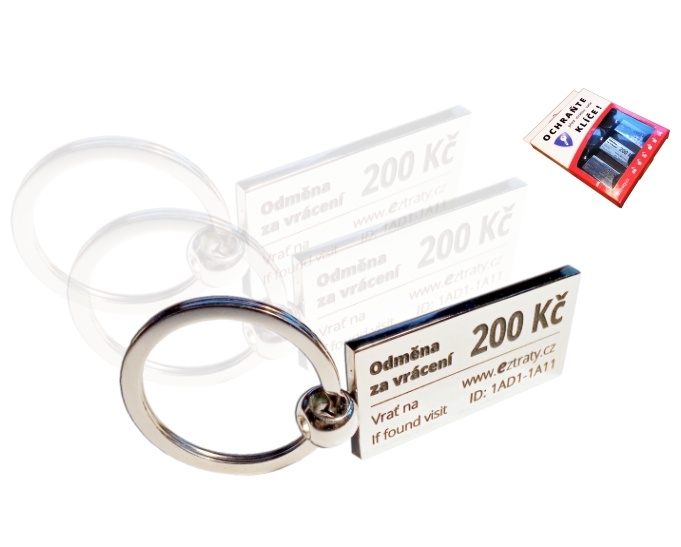 Klíčenky mají na sobě pevně stanovenou odměnu, tudíž je nálezce rovnou motivován k vrácení. Hodí se zejména na bezpečnostní klíče nebo klíče od auta. Aby nálezce nevěděl od čeho klíče jsou, klíče vyzvedneme + vyplatíme nálezné a doručíme Vám je my - služba bezpečného doručení klíčů. Tím Vás chráníme před zloději, kteří by si klíče před vrácením okopírovali a pak Vám byt "vybílili". Některá balení klíčenek obsahují službu bezpečného doručení už předplacenou, tzn. v ceně je kurýr, poštovné i odměna nálezci.